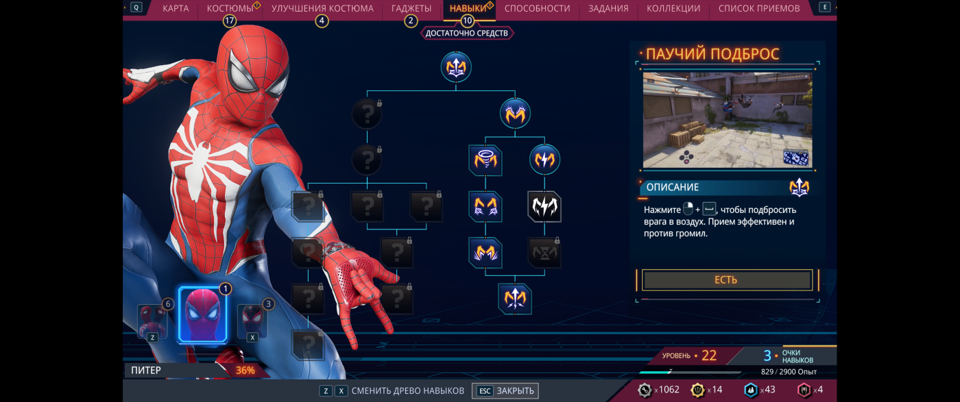 - Два паука — два кайфа. Ты в любой момент можешь переключиться с Питера на Майлза. И это не просто смена кожи! Питер с симбиотом — это такая грубая сила, ломаешь всех кулаками, как Танк. А Майлз — это про скорость и стиль, щелкаешь биотоком, враги дергаются, все красиво и четко.