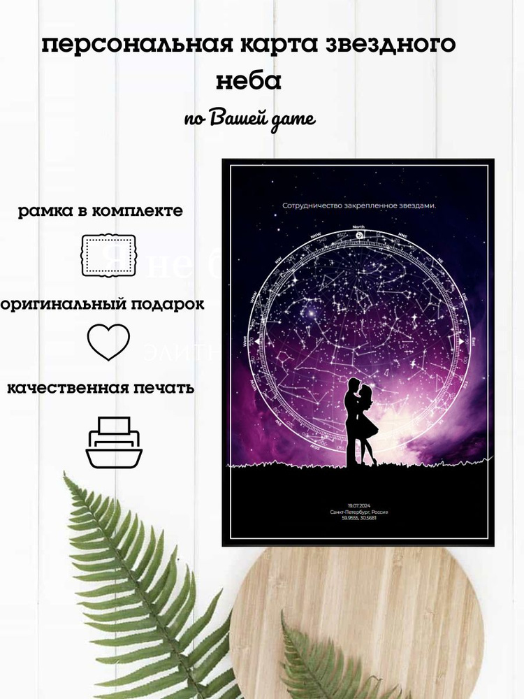 Закажите постер с картой звёзд на день рождения, первую встречу или другой важный момент. Такой подарок станет уникальным украшением интерьера.