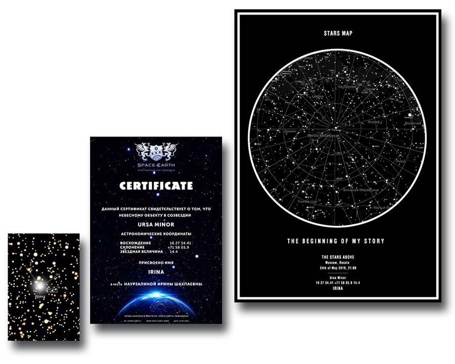 Закажите сертификат на именную звезду — ваш близкий сможет найти её на небе с помощью специального приложения. Это не просто подарок, а вечная память о ваших отношениях.