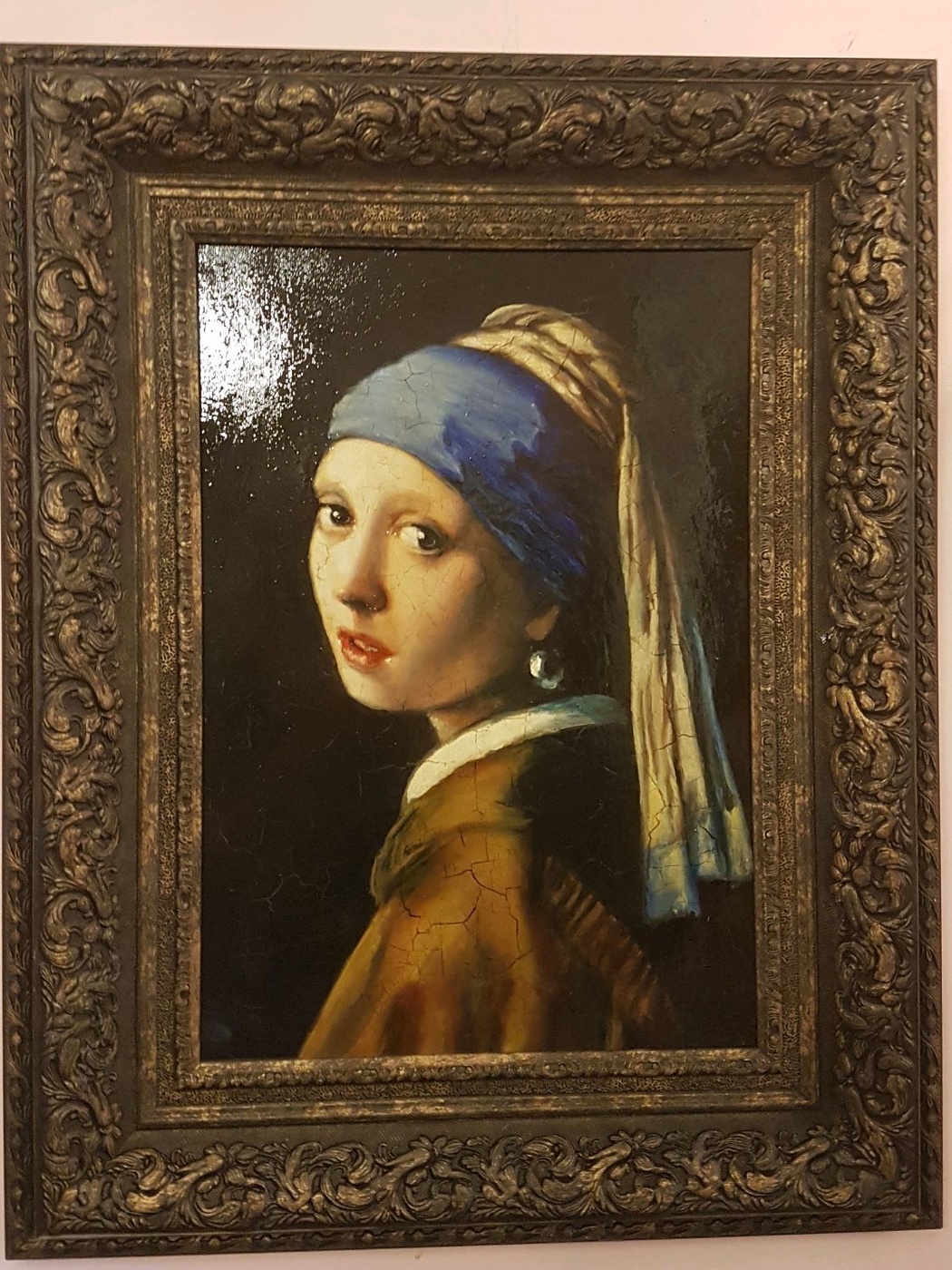 - Жемчужина — иллюзия: На самом деле это не жемчуг, а полированное оловянное украшение — в 17 веке настоящий жемчуг был слишком дорог.